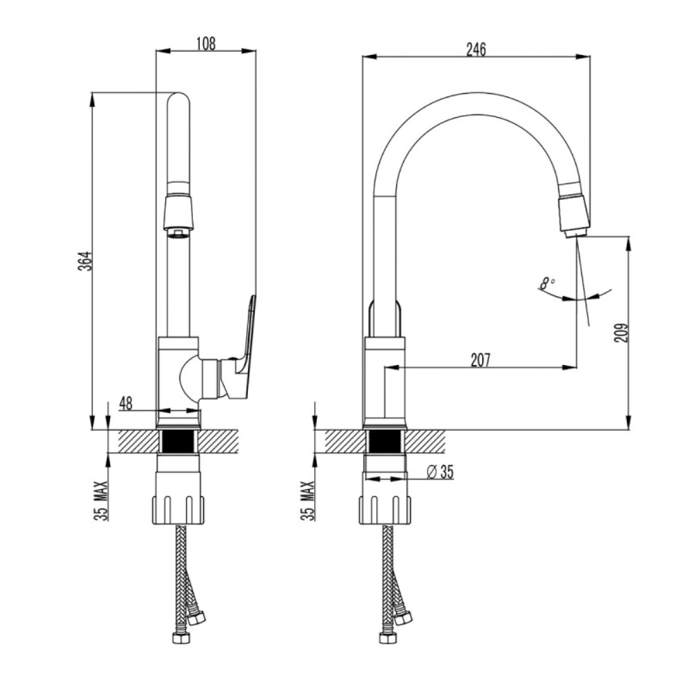 Смеситель для кухни Azario Elvis имеет поворотный излив. Изготовлен из качественной латуни и имеет защитное покрытие, что способствует устойчивости к коррозии и резким перепадам температуры. Рычажное управление, горизонтальный монтаж на одно отверстие.