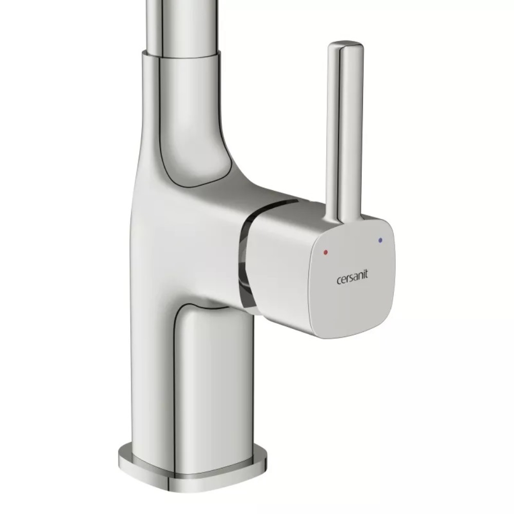 Смеситель для кухни Cersanit Elio имеет поворотный излив. Изготовлен из качественной латуни и имеет защитное покрытие, что способствует устойчивости к коррозии и резким перепадам температуры. Рычажное управление, горизонтальный монтаж на одно отверстие.