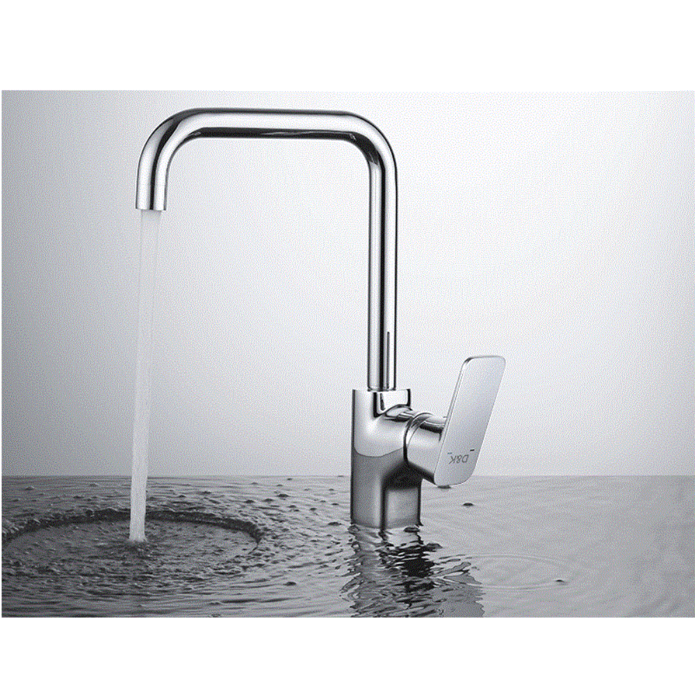 Смеситель для кухни D&K Berlin-Freieимеет поворотный излив. Изготовлен из качественной латуни и имеет защитное покрытие, что способствует устойчивости к коррозии и резким перепадам температуры. Рычажное управление, горизонтальный монтаж на одно отверстие.